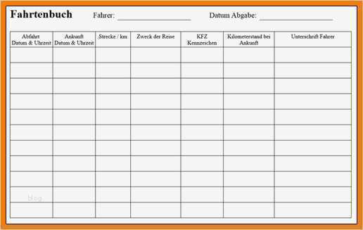 Hübsch Vorlage Fahrtenbuch