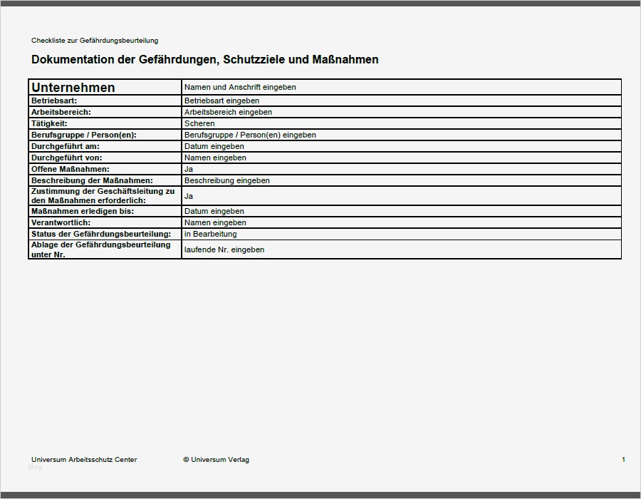 Gut Vorlage Gefährdungsbeurteilung