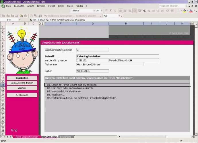 Vorlage Gesprächsnotiz Kostenlos Schön Gesprächsnotiz tool Excel Download
