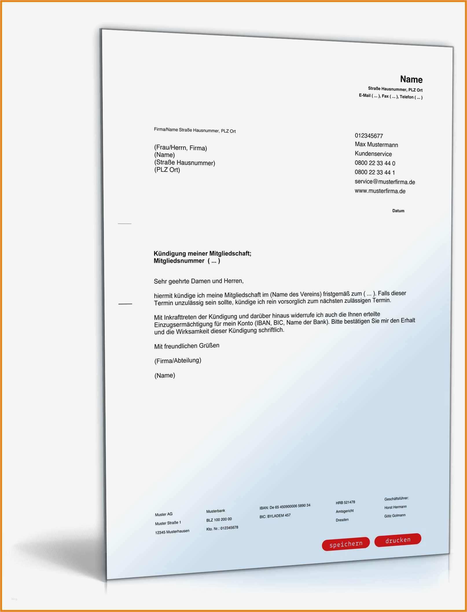 Elegant Vorlage Kündigung Mitgliedschaft
