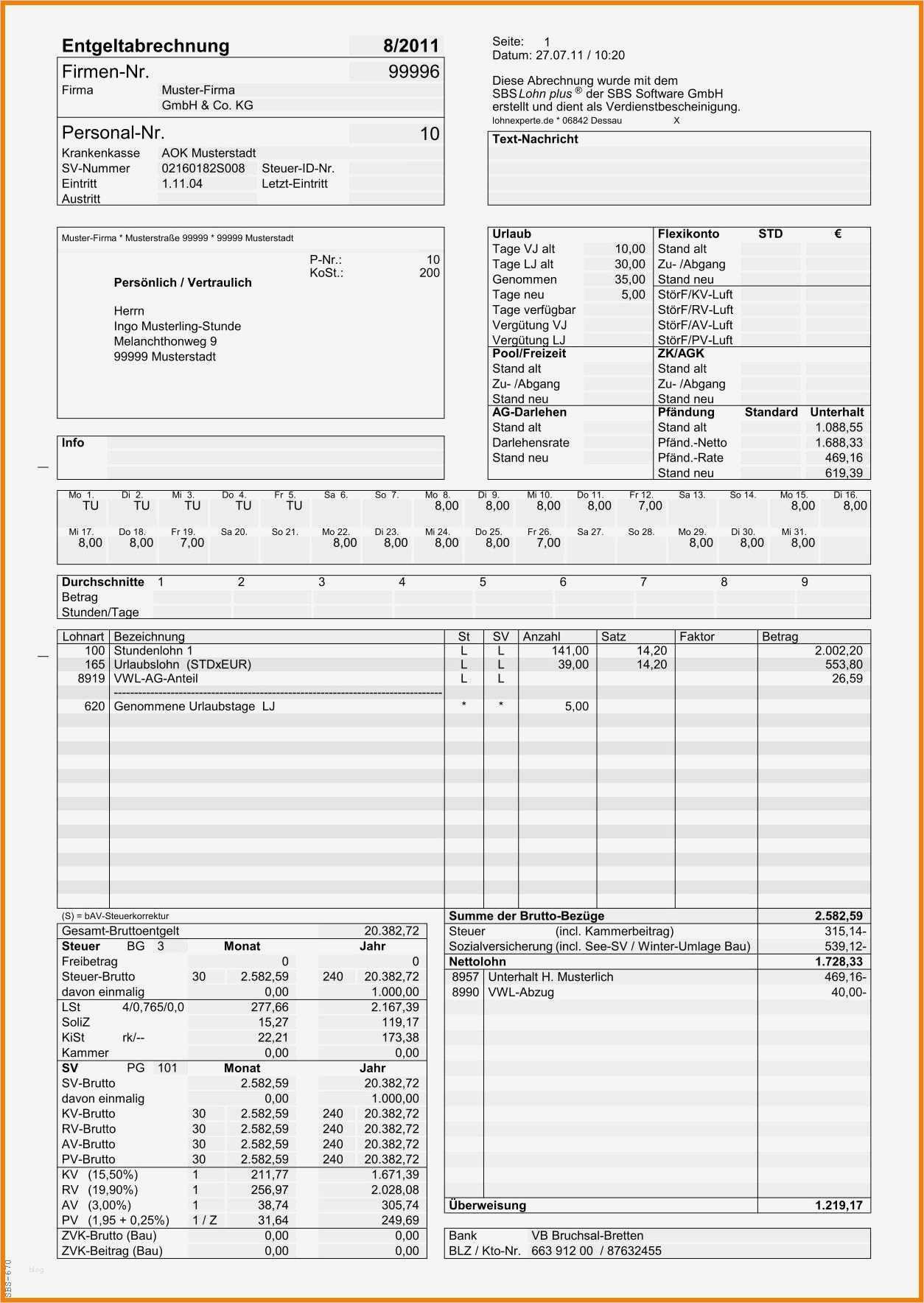 Vorlage Lohnabrechnung Minijob Angenehm 9 Gehaltsabrechnung Muster