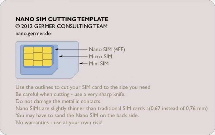 Genial Vorlage Nano Sim