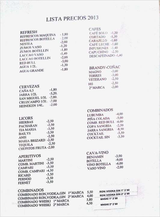 Vorlage Preisliste Getränke Süß "preisliste Für Nicht Ai Gäste Alle Getränke Ai" Hotel
