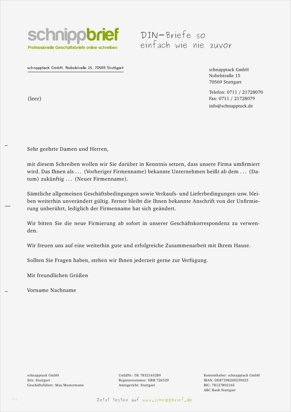Genial Vorlage Schreiben Umfirmierung