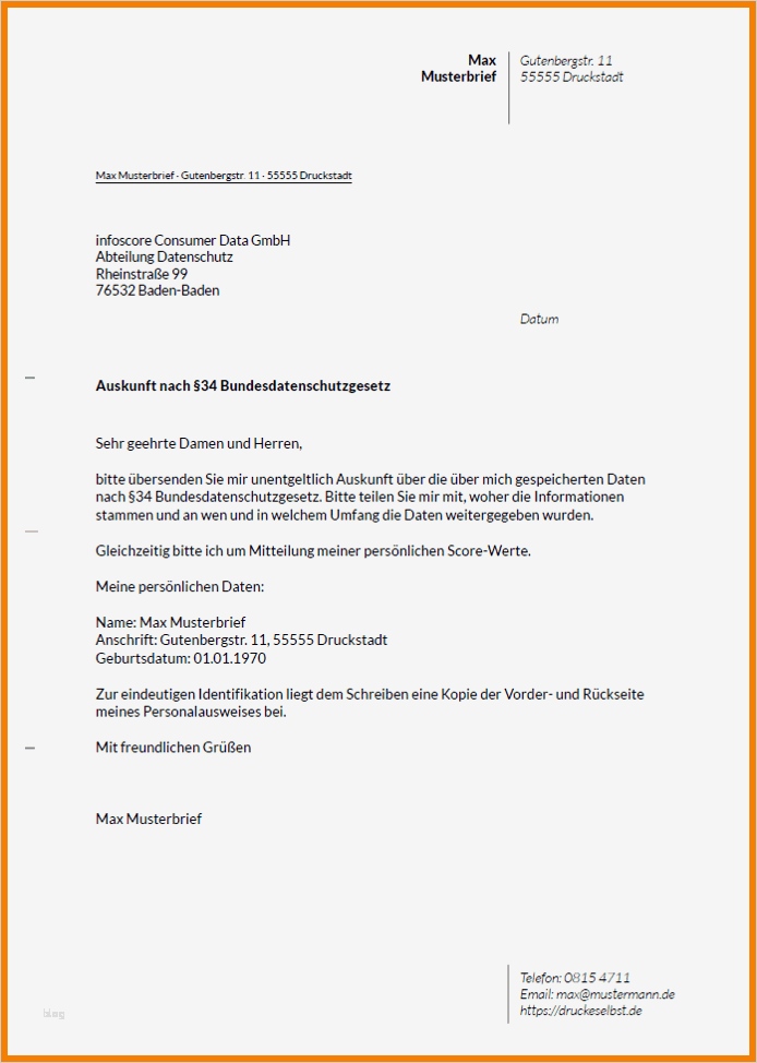 Vorlage Schufa Auskunft Für Vermieter Hübsch 13 formbrief Vorlage