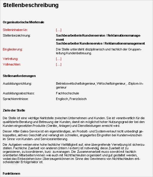Vorlage Stellenbeschreibung Wunderbar Stellenbeschreibung Reklamationsmanagmentsachbearbeiter
