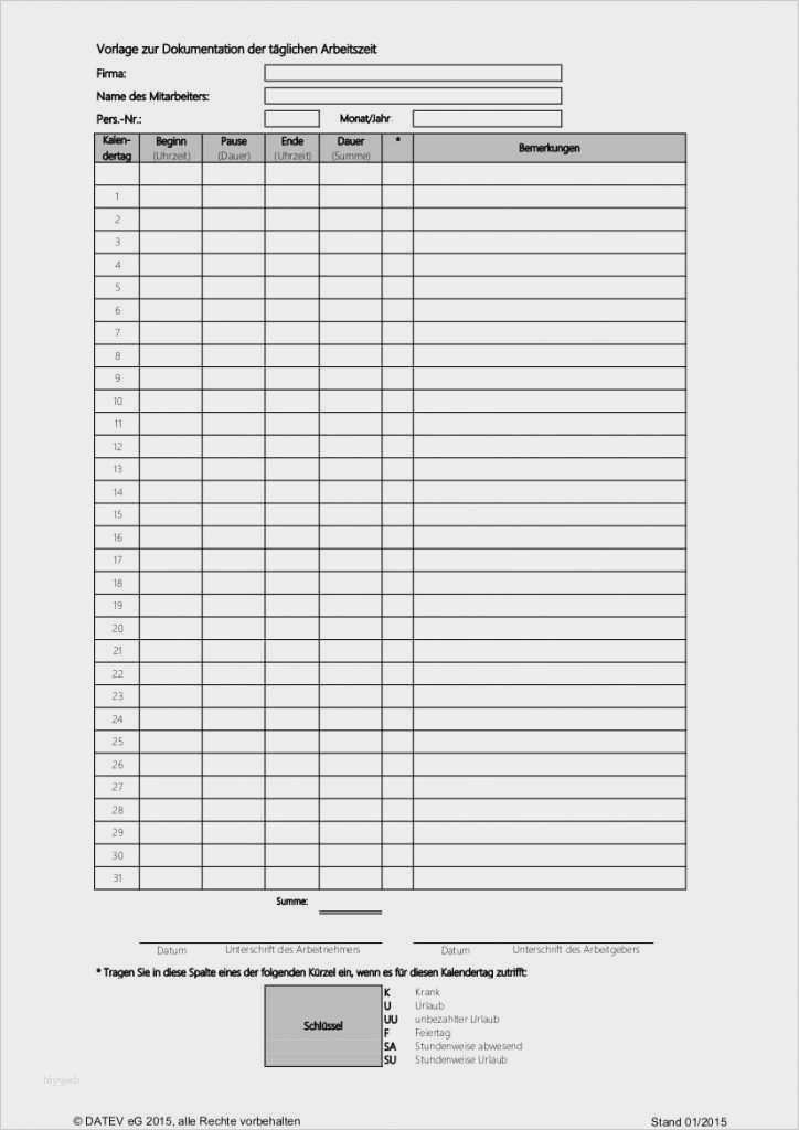 Genial Vorlage Tägliche Arbeitszeit Datev