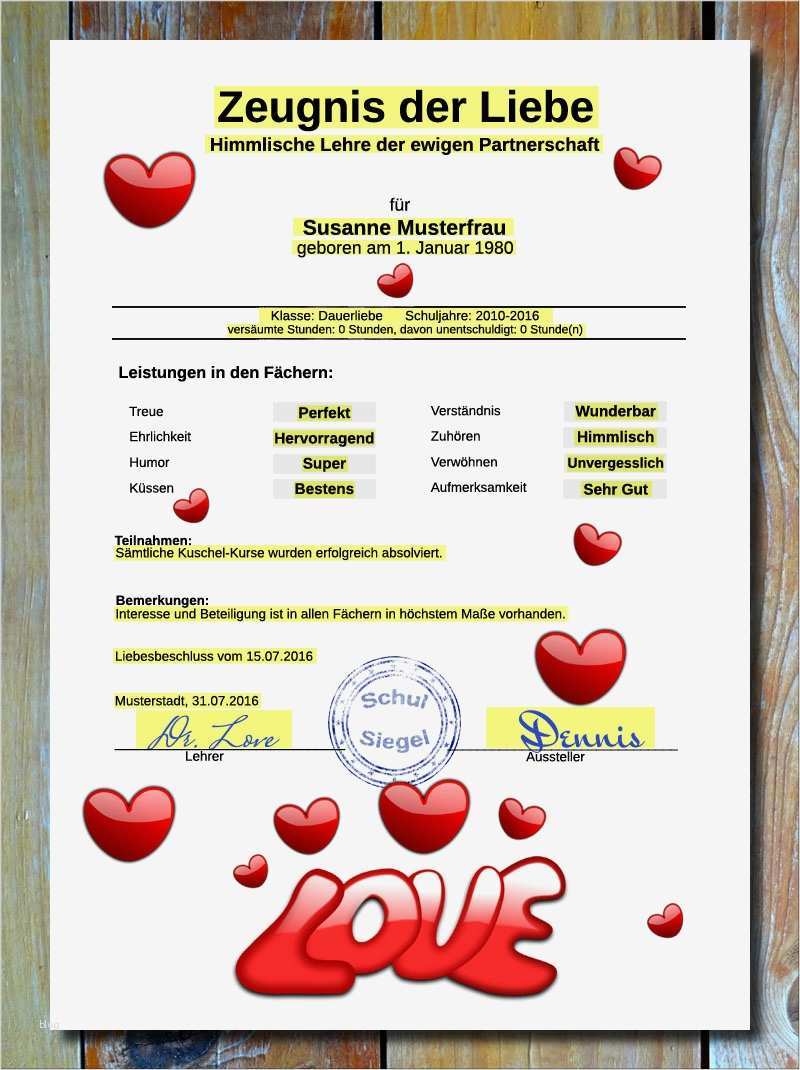 Vorlage Zeugnis Best Of Zeugnis Der Liebe Liebesbeweis Geschenk Partner