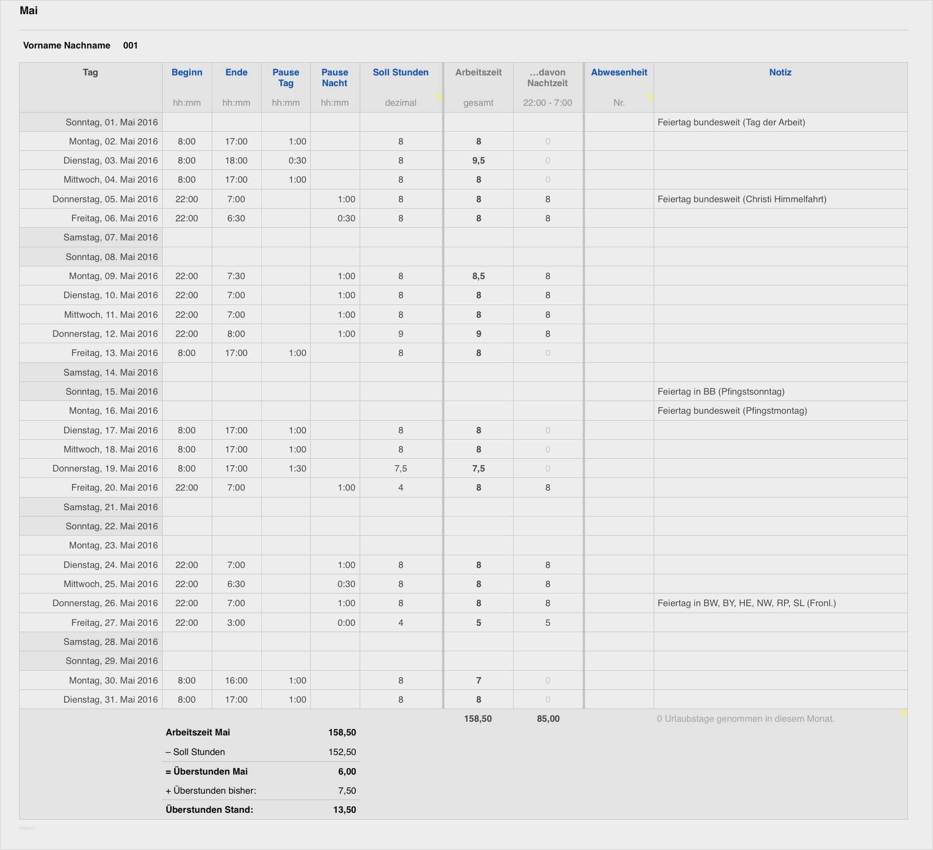 Genial Vorlage Zur Dokumentation Der Täglichen Arbeitszeit 2016