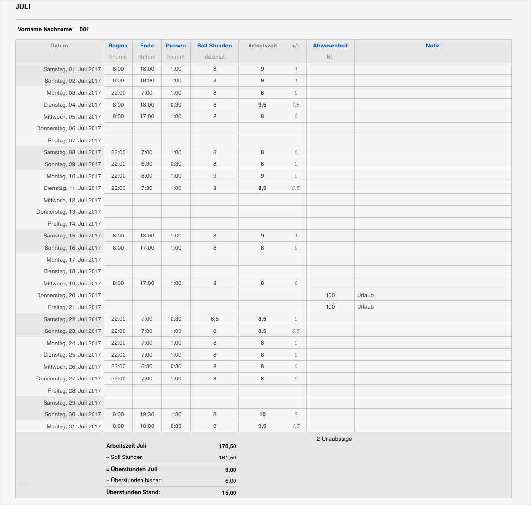 Fabelhaft Vorlage Zur Dokumentation Der Täglichen Arbeitszeit 2017