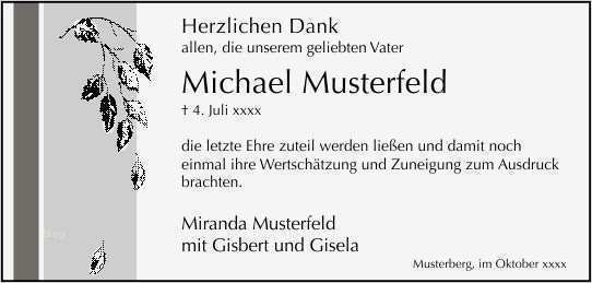 Modelle regeln und tipps für trauerdanksagungen abschiedstrauer lassen sie sich zeit mit dem aussprechen des dankes für anteilnahme an ihrer trauer erst vierzig tage nach der beerdigung bzw beisetzung der urne werden danksagungskarten verschickt dann werden auch zeitungsanzeigen mit dem dank der angehörigen aufgesetzt texte als vorlagen für trauerdanksagungen gedenkseiten für gestaltung von trauerkarten bieten wir ihnen einfühlsame trauerdanksagungen texte und sprüche als vorlage & formulierungshilfe zur freien danksagung trauer & beerdigung 30 ideen für texte im um ihnen se arbeit zu erleichtern haben wir für sie 30 schönsten beispiele herausgesucht sie im trauerfall als danksagung nutzen können und geben ihnen zusätzlich nützliche tipps worauf sie außerdem achten sollten was sie bei danksagungen im trauerfall berücksichtigen sollten die richtige anrede