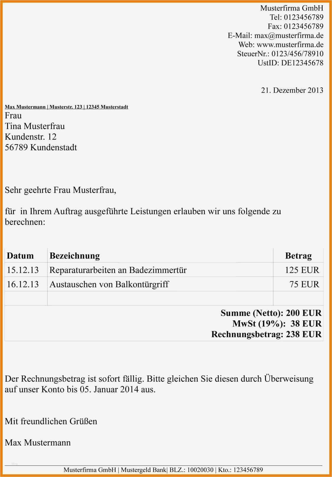 Weiterbelastung Rechnung Vorlage Erstaunlich 15 Muster Rechnung Schreiben