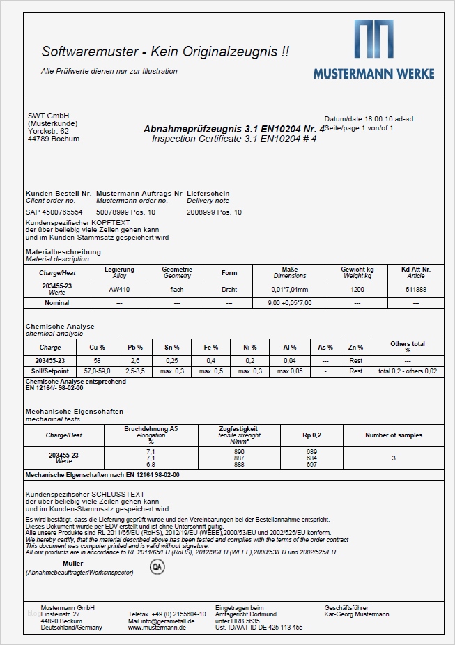 Werkszeugnis 2.2 Vorlage Schönste Swt softwaretechnik Gmbh Metall Zeugnis