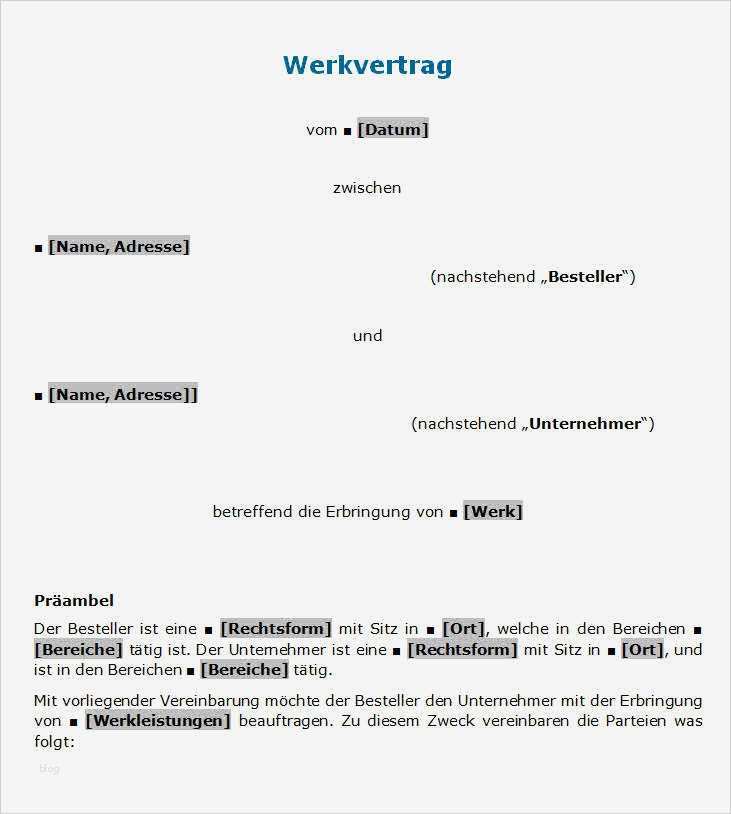 Genial Werkvertrag Vorlage
