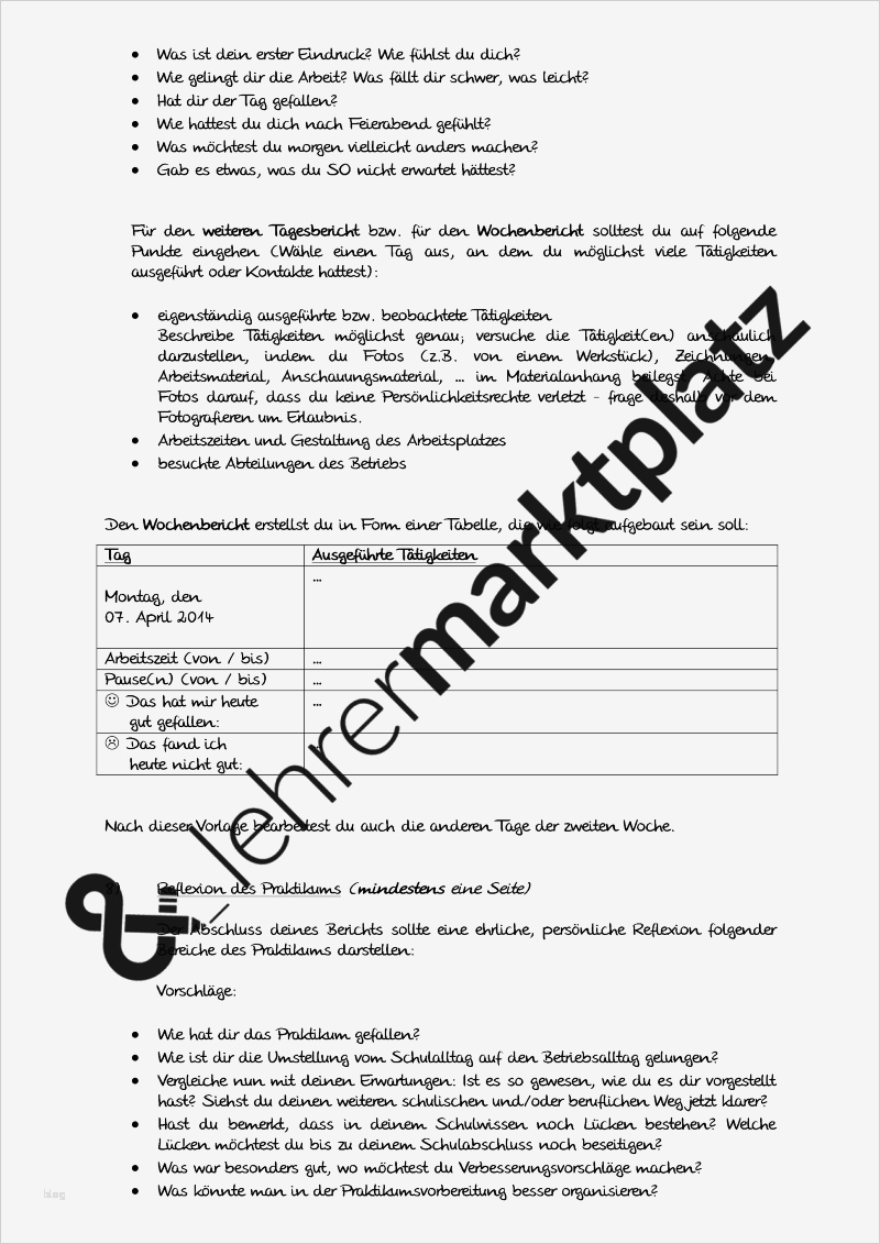 Wochenbericht Vorlage Elegant Praktikumsbericht F R Sch Ler Berufsorientierung Lehreralltag
