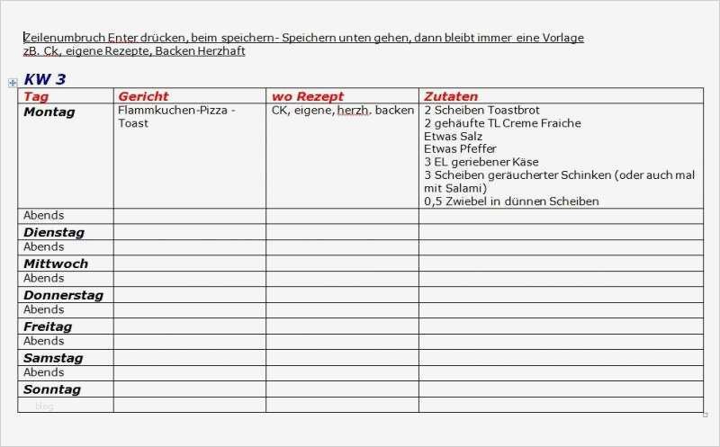 Einzigartig Wochenplan Essen Vorlage