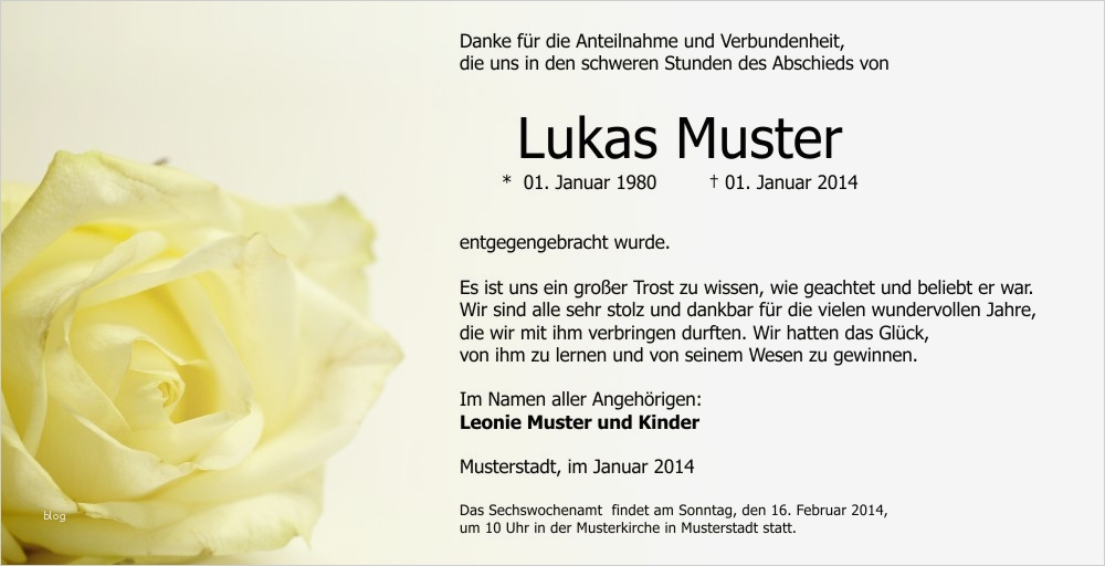 Bewundernswert Word Vorlage Danksagung Trauer