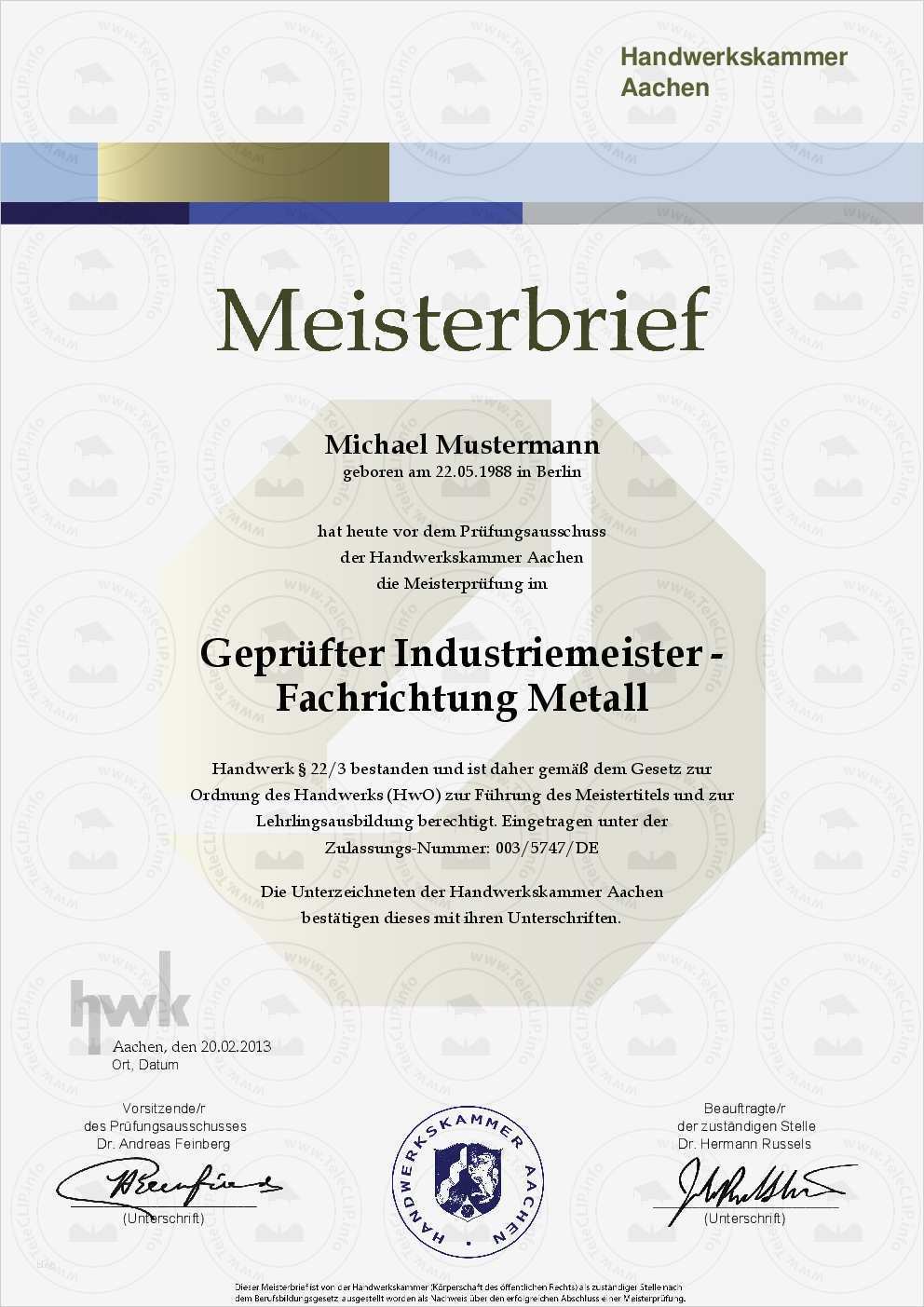 Zeugnis Vorlage Pdf Neu Hwk Meisterbrief Kaufen