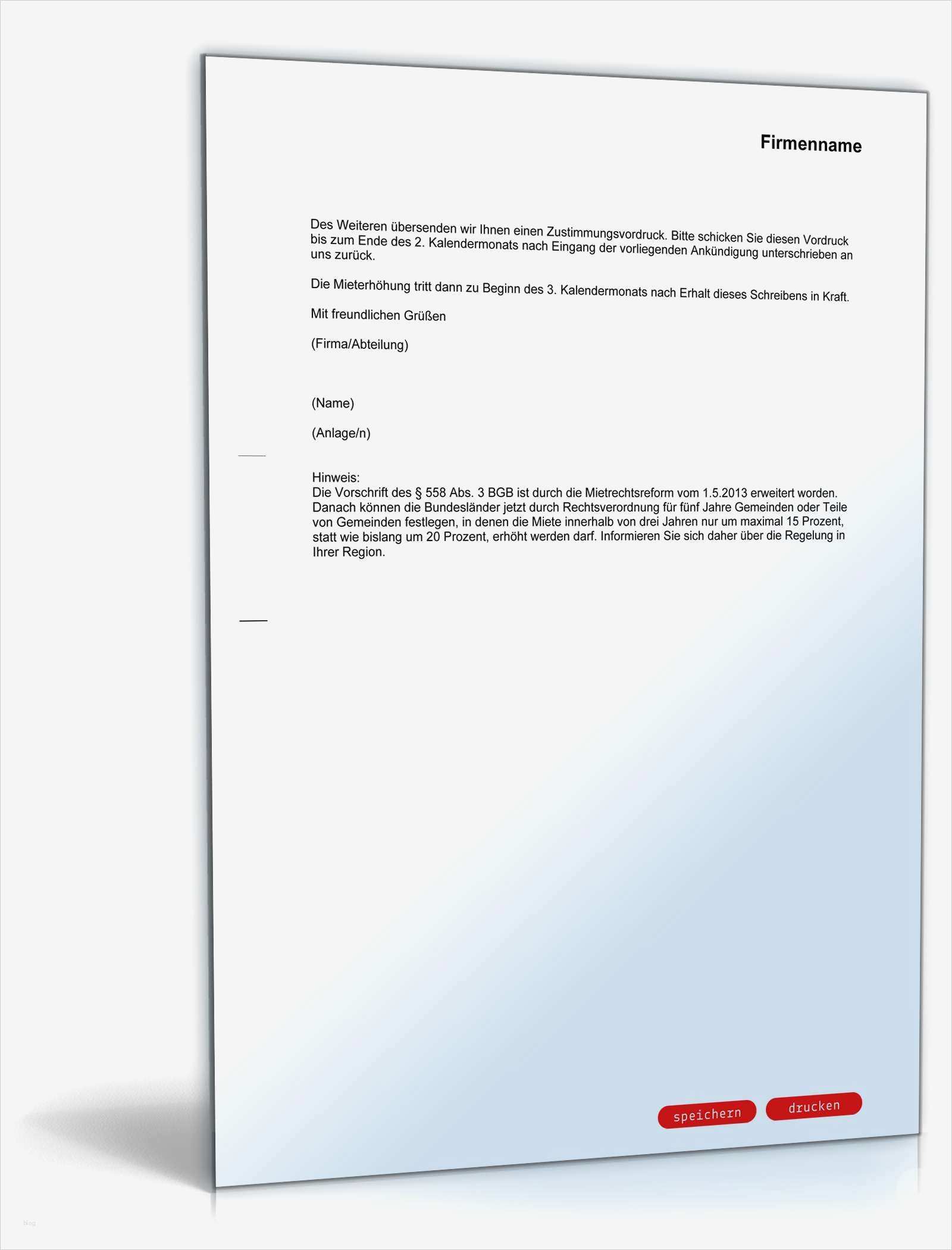 Erstaunlich Zustimmung Mieterhöhung Vorlage