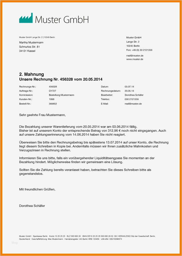 Beste Zweite Mahnung Vorlage